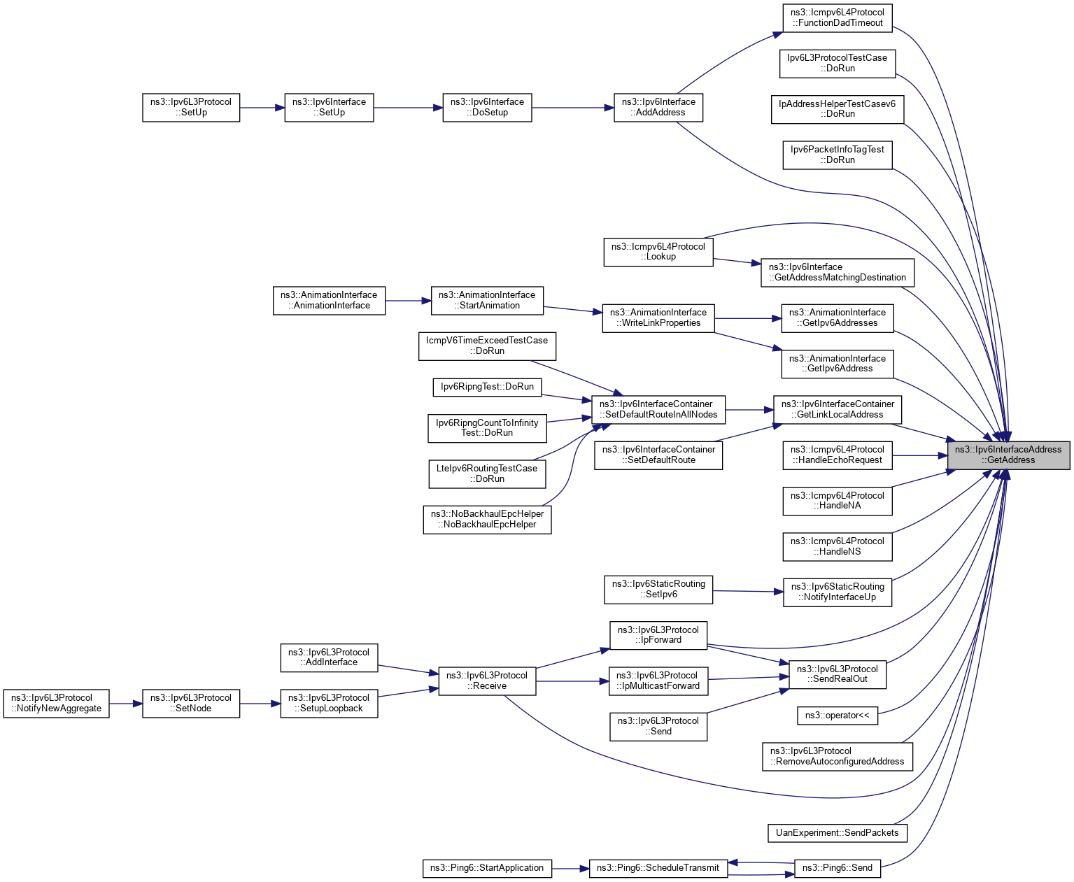 Referenced by ns3::Ipv6Interface::AddAddress(), Ipv6L3ProtocolTestCase::DoRun(), IpAddressHelperTestCasev6::DoRun(), Ipv6PacketInfoTagTest::DoRun(), ns3::Icmpv6L4Protocol::FunctionDadTimeout(), ns3::Ipv6Interface::GetAddressMatchingDestination(), ns3::AnimationInterface::GetIpv6Address(), ns3::AnimationInterface::GetIpv6Addresses(), ns3::Ipv6InterfaceContainer::GetLinkLocalAddress(), ns3::Icmpv6L4Protocol::HandleEchoRequest(), ns3::Icmpv6L4Protocol::HandleNA(), ns3::Icmpv6L4Protocol::HandleNS(), ns3::Ipv6L3Protocol::IpForward(), ns3::Icmpv6L4Protocol::Lookup(), ns3::Ipv6StaticRouting::NotifyInterfaceUp(), ns3::operator<<(), ns3::Ipv6L3Protocol::Receive(), ns3::Ipv6L3Protocol::RemoveAutoconfiguredAddress(), ns3::Ping6::Send(), UanExperiment::SendPackets(), and ns3::Ipv6L3Protocol::SendRealOut().