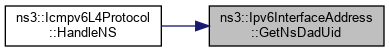 Here is the caller graph for this function:| uint32_t ns3::Ipv6InterfaceAddress::GetNsDadUid | ( | ) | const |