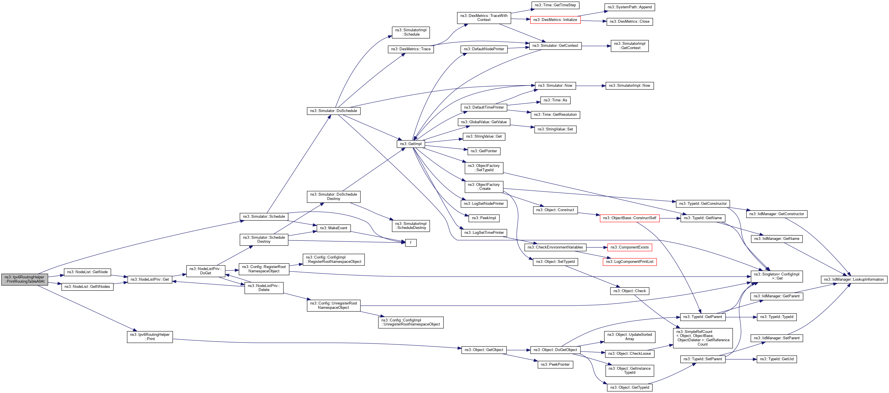 This method calls the PrintRoutingTable() method of the Ipv6RoutingProtocol stored in the Ipv6 object, for all nodes at the specified time; the output format is routing protocol-specific.