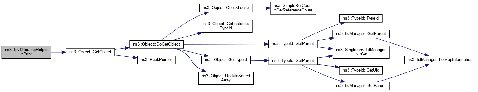 This method calls the PrintRoutingTable() method of the Ipv6RoutingProtocol stored in the Ipv6 object; the output format is routing protocol-specific.