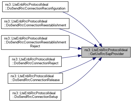 Here is the call graph for this function:| LteUeRrcSapProvider * ns3::LteEnbRrcProtocolIdeal::GetUeRrcSapProvider | ( | uint16_t | rnti | ) |