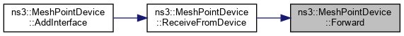 References ns3::Time::As(), ns3::MeshPointDevice::Statistics::broadcastData, ns3::MeshPointDevice::Statistics::broadcastDataBytes, ns3::Mac48Address::ConvertFrom(), ns3::Packet::Copy(), Forward(), GetForwardingDelay(), ns3::NetDevice::GetIfIndex(), ns3::Packet::GetSize(), ns3::Packet::GetUid(), ns3::Mac48Address::IsGroup(), ns3::Callback< R, T1, T2, T3, T4, T5, T6, T7, T8, T9 >::IsNull(), m_address, m_promiscRxCallback, m_routingProtocol, m_rxCallback, m_rxStats, NS_LOG_DEBUG, NS_LOG_FUNCTION, ns3::Simulator::Schedule(), ns3::MeshPointDevice::Statistics::unicastData, ns3::MeshPointDevice::Statistics::unicastDataBytes, and ns3::Time::US.