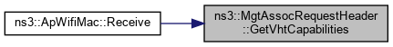 Here is the caller graph for this function:| VhtCapabilities ns3::MgtAssocRequestHeader::GetVhtCapabilities | ( | void | ) | const |