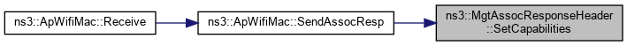 Here is the caller graph for this function:| void ns3::MgtAssocResponseHeader::SetCapabilities | ( | CapabilityInformation | capabilities | ) |