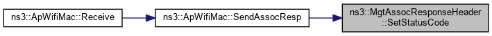 Here is the caller graph for this function:| void ns3::MgtAssocResponseHeader::SetStatusCode | ( | StatusCode | code | ) |