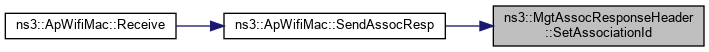 Here is the call graph for this function:| void ns3::MgtAssocResponseHeader::SetAssociationId | ( | uint16_t | aid | ) |