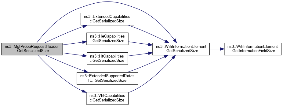 References ns3::SupportedRates::extended, ns3::WifiInformationElement::GetSerializedSize(), ns3::ExtendedCapabilities::GetSerializedSize(), ns3::HeCapabilities::GetSerializedSize(), ns3::HtCapabilities::GetSerializedSize(), ns3::ExtendedSupportedRatesIE::GetSerializedSize(), ns3::VhtCapabilities::GetSerializedSize(), m_extendedCapability, m_heCapability, m_htCapability, m_rates, m_ssid, and m_vhtCapability.
