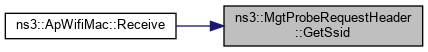 Here is the call graph for this function:| Ssid ns3::MgtProbeRequestHeader::GetSsid | ( | void | ) | const |