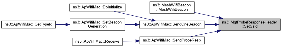 Here is the caller graph for this function:| void ns3::MgtProbeResponseHeader::SetSsid | ( | Ssid | ssid | ) |