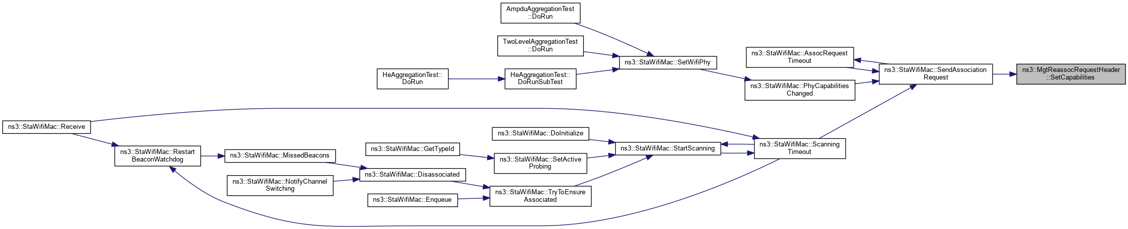 Here is the call graph for this function:| void ns3::MgtReassocRequestHeader::SetCapabilities | ( | CapabilityInformation | capabilities | ) |