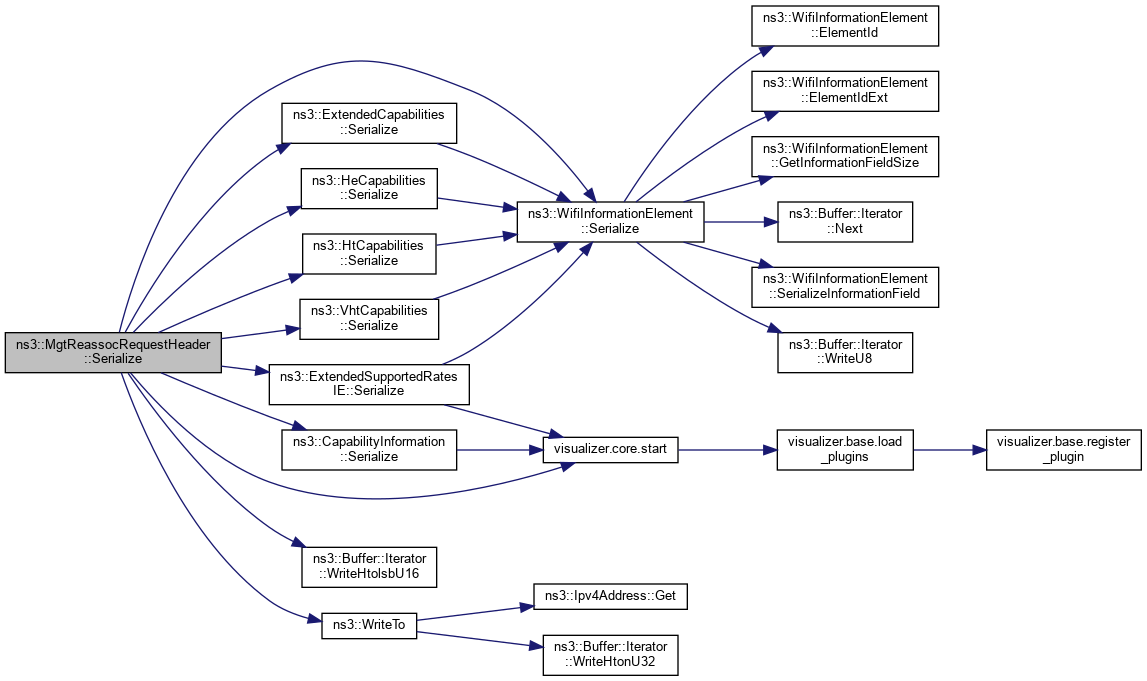 References ns3::SupportedRates::extended, m_capability, m_currentApAddr, m_extendedCapability, m_heCapability, m_htCapability, m_listenInterval, m_rates, m_ssid, m_vhtCapability, ns3::WifiInformationElement::Serialize(), ns3::CapabilityInformation::Serialize(), ns3::ExtendedCapabilities::Serialize(), ns3::HeCapabilities::Serialize(), ns3::HtCapabilities::Serialize(), ns3::ExtendedSupportedRatesIE::Serialize(), ns3::VhtCapabilities::Serialize(), visualizer.core::start(), ns3::Buffer::Iterator::WriteHtolsbU16(), and ns3::WriteTo().