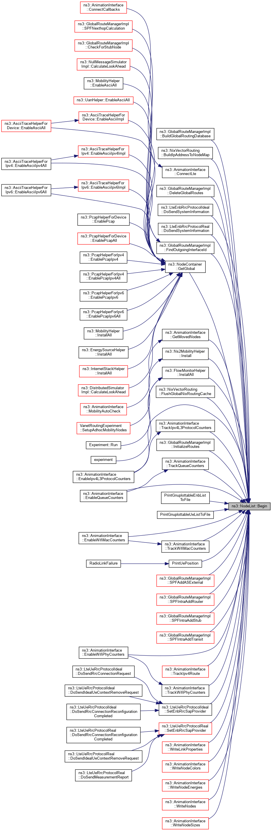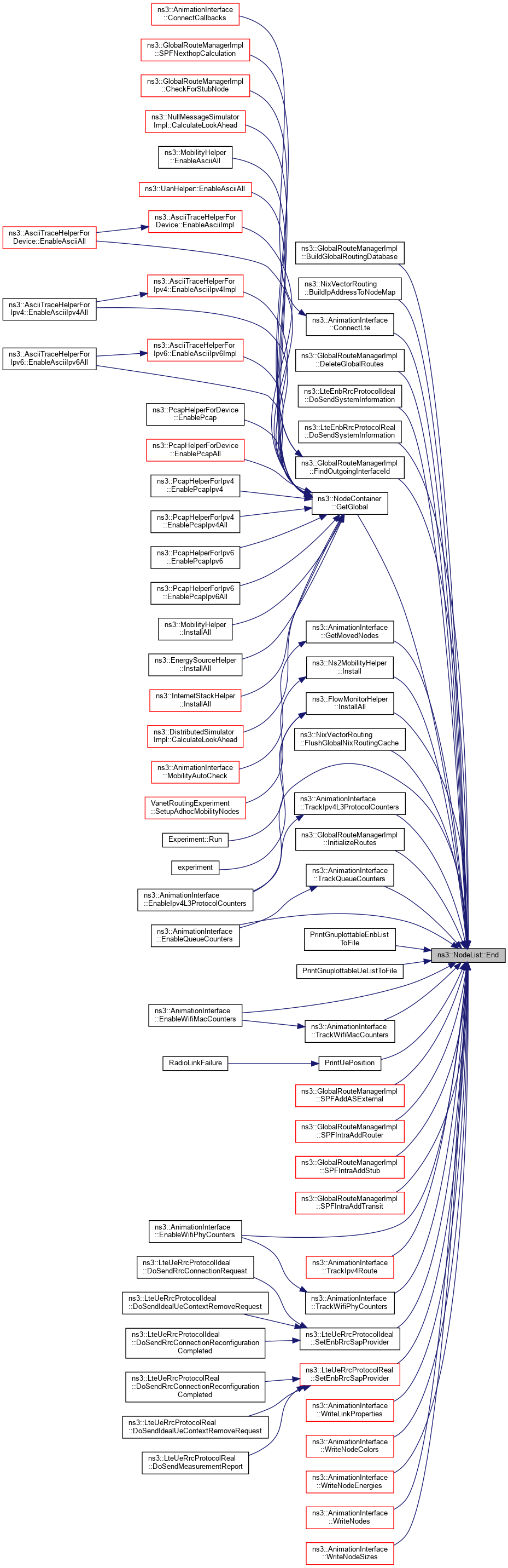 Referenced by ns3::GlobalRouteManagerImpl::BuildGlobalRoutingDatabase(), ns3::NixVectorRouting< T >::BuildIpAddressToNodeMap(), ns3::AnimationInterface::ConnectLte(), ns3::GlobalRouteManagerImpl::DeleteGlobalRoutes(), ns3::LteEnbRrcProtocolIdeal::DoSendSystemInformation(), ns3::LteEnbRrcProtocolReal::DoSendSystemInformation(), ns3::AnimationInterface::EnableIpv4L3ProtocolCounters(), ns3::AnimationInterface::EnableQueueCounters(), ns3::AnimationInterface::EnableWifiMacCounters(), ns3::AnimationInterface::EnableWifiPhyCounters(), ns3::GlobalRouteManagerImpl::FindOutgoingInterfaceId(), ns3::NixVectorRouting< T >::FlushGlobalNixRoutingCache(), ns3::NodeContainer::GetGlobal(), ns3::AnimationInterface::GetMovedNodes(), ns3::GlobalRouteManagerImpl::InitializeRoutes(), ns3::Ns2MobilityHelper::Install(), ns3::FlowMonitorHelper::InstallAll(), PrintGnuplottableEnbListToFile(), PrintGnuplottableUeListToFile(), PrintUePosition(), ns3::LteUeRrcProtocolIdeal::SetEnbRrcSapProvider(), ns3::LteUeRrcProtocolReal::SetEnbRrcSapProvider(), ns3::GlobalRouteManagerImpl::SPFAddASExternal(), ns3::GlobalRouteManagerImpl::SPFIntraAddRouter(), ns3::GlobalRouteManagerImpl::SPFIntraAddStub(), ns3::GlobalRouteManagerImpl::SPFIntraAddTransit(), ns3::AnimationInterface::TrackIpv4L3ProtocolCounters(), ns3::AnimationInterface::TrackIpv4Route(), ns3::AnimationInterface::TrackQueueCounters(), ns3::AnimationInterface::TrackWifiMacCounters(), ns3::AnimationInterface::TrackWifiPhyCounters(), ns3::AnimationInterface::WriteLinkProperties(), ns3::AnimationInterface::WriteNodeColors(), ns3::AnimationInterface::WriteNodeEnergies(), ns3::AnimationInterface::WriteNodes(), and ns3::AnimationInterface::WriteNodeSizes().