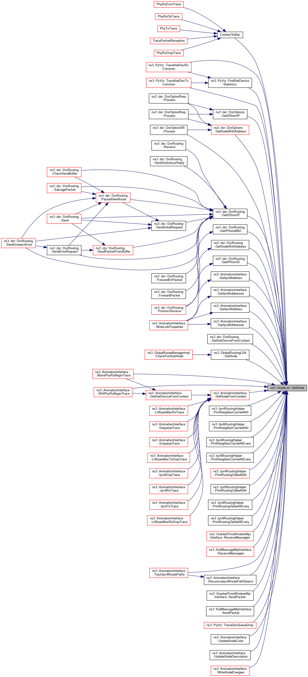 Referenced by ContextToMac(), ns3::PyViz::FindNetDeviceStatistics(), ns3::dsr::DsrOptions::GetIDfromIP(), ns3::dsr::DsrRouting::GetIDfromIP(), ns3::dsr::DsrRouting::GetIPfromID(), ns3::dsr::DsrRouting::GetIPfromMAC(), ns3::AnimationInterface::GetIpv4Address(), ns3::AnimationInterface::GetIpv4Addresses(), ns3::AnimationInterface::GetIpv6Address(), ns3::AnimationInterface::GetIpv6Addresses(), ns3::dsr::DsrRouting::GetNetDeviceFromContext(), ns3::GlobalRoutingLSA::GetNode(), ns3::AnimationInterface::GetNodeFromContext(), ns3::dsr::DsrOptions::GetNodeWithAddress(), ns3::dsr::DsrRouting::GetNodeWithAddress(), ns3::Ipv4RoutingHelper::PrintNeighborCacheAllAt(), ns3::Ipv6RoutingHelper::PrintNeighborCacheAllAt(), ns3::Ipv4RoutingHelper::PrintNeighborCacheAllEvery(), ns3::Ipv6RoutingHelper::PrintNeighborCacheAllEvery(), ns3::Ipv4RoutingHelper::PrintRoutingTableAllAt(), ns3::Ipv6RoutingHelper::PrintRoutingTableAllAt(), ns3::Ipv4RoutingHelper::PrintRoutingTableAllEvery(), ns3::Ipv6RoutingHelper::PrintRoutingTableAllEvery(), ns3::dsr::DsrOptionSR::Process(), ns3::GrantedTimeWindowMpiInterface::ReceiveMessages(), ns3::NullMessageMpiInterface::ReceiveMessages(), ns3::AnimationInterface::RecursiveIpv4RoutePathSearch(), ns3::GrantedTimeWindowMpiInterface::SendPacket(), ns3::NullMessageMpiInterface::SendPacket(), ns3::PyViz::TraceDevQueueDrop(), ns3::PyViz::TraceNetDevRxCommon(), ns3::PyViz::TraceNetDevTxCommon(), ns3::AnimationInterface::TrackIpv4RoutePaths(), ns3::AnimationInterface::UpdateNodeColor(), ns3::AnimationInterface::UpdateNodeDescription(), ns3::AnimationInterface::WavePhyRxBeginTrace(), ns3::AnimationInterface::WifiPhyRxBeginTrace(), and ns3::AnimationInterface::WriteNodeEnergies().