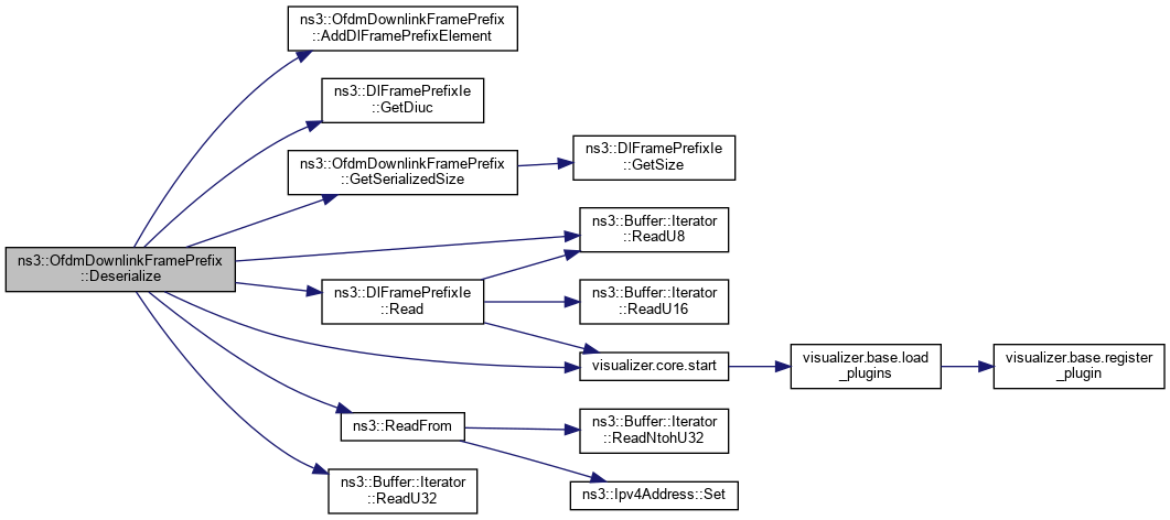 References AddDlFramePrefixElement(), ns3::DlFramePrefixIe::GetDiuc(), GetSerializedSize(), m_baseStationId, m_configurationChangeCount, m_frameNumber, m_hcs, ns3::DlFramePrefixIe::Read(), ns3::ReadFrom(), ns3::Buffer::Iterator::ReadU32(), ns3::Buffer::Iterator::ReadU8(), and visualizer.core::start().