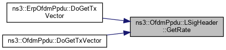Here is the caller graph for this function:| uint64_t ns3::OfdmPpdu::LSigHeader::GetRate | ( | uint16_t | channelWidth = 20 | ) | const |