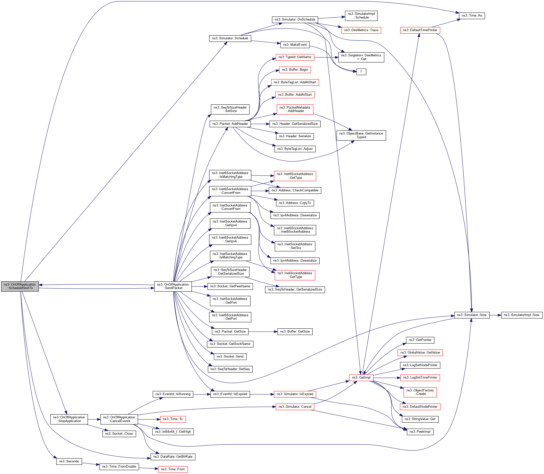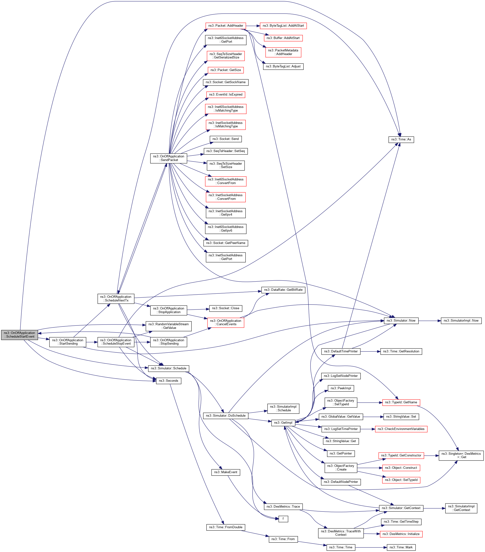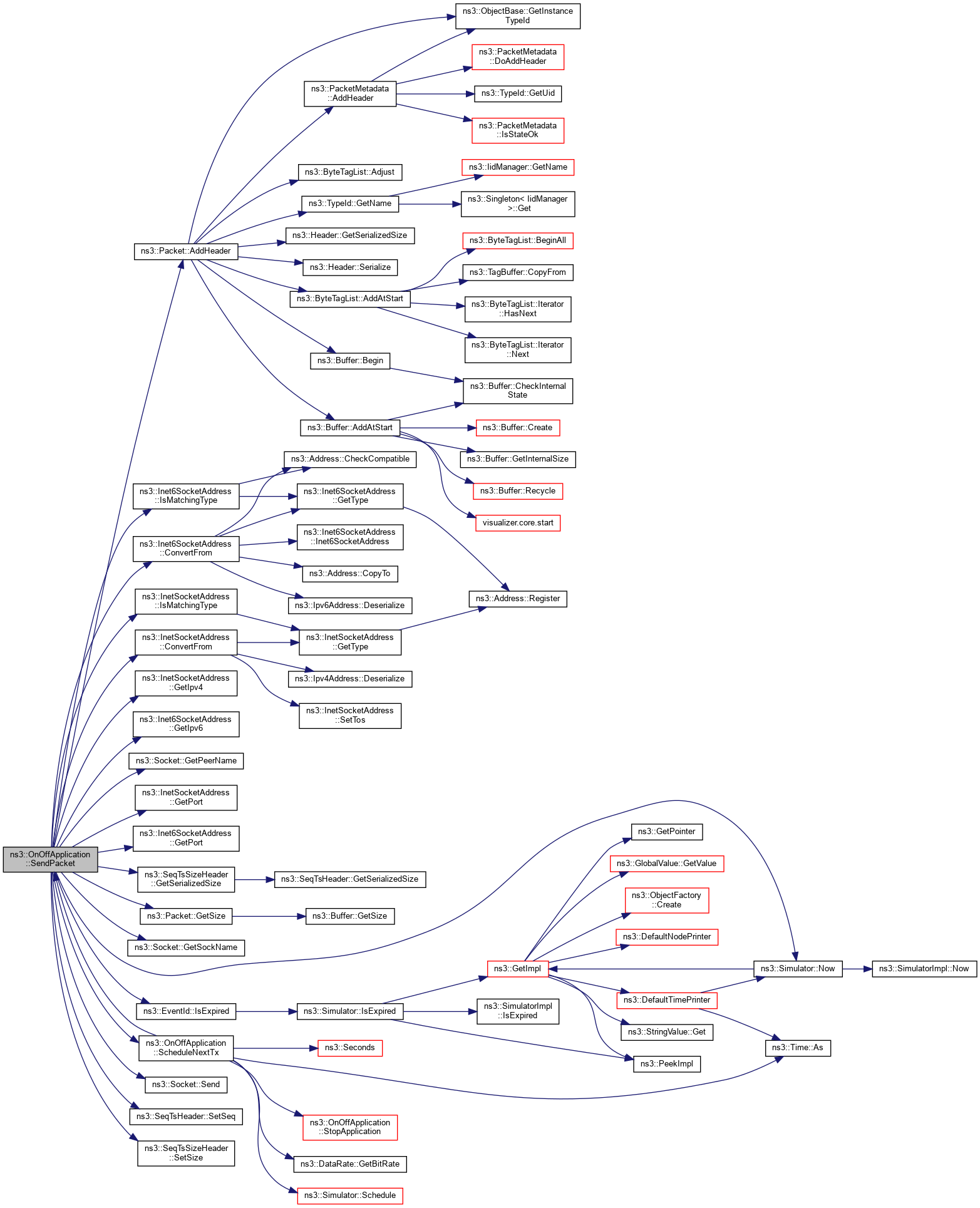References ns3::Packet::AddHeader(), ns3::Inet6SocketAddress::ConvertFrom(), ns3::InetSocketAddress::ConvertFrom(), ns3::InetSocketAddress::GetIpv4(), ns3::Inet6SocketAddress::GetIpv6(), ns3::Socket::GetPeerName(), ns3::InetSocketAddress::GetPort(), ns3::Inet6SocketAddress::GetPort(), ns3::SeqTsSizeHeader::GetSerializedSize(), ns3::Packet::GetSize(), ns3::Socket::GetSockName(), ns3::EventId::IsExpired(), ns3::Inet6SocketAddress::IsMatchingType(), ns3::InetSocketAddress::IsMatchingType(), m_enableSeqTsSizeHeader, m_lastStartTime, m_peer, m_pktSize, m_residualBits, m_sendEvent, m_seq, m_socket, m_totBytes, m_txTrace, m_txTraceWithAddresses, m_txTraceWithSeqTsSize, m_unsentPacket, ns3::Simulator::Now(), NS_ABORT_IF, NS_ASSERT, NS_LOG_DEBUG, NS_LOG_FUNCTION, NS_LOG_INFO, ns3::Time::S, ScheduleNextTx(), ns3::Socket::Send(), ns3::SeqTsHeader::SetSeq(), and ns3::SeqTsSizeHeader::SetSize().