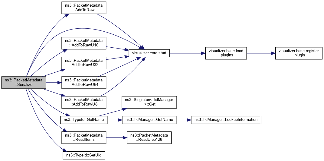 References AddToRaw(), AddToRawU16(), AddToRawU32(), AddToRawU64(), AddToRawU8(), ns3::PacketMetadata::SmallItem::chunkUid, ns3::PacketMetadata::ExtraItem::fragmentEnd, ns3::PacketMetadata::ExtraItem::fragmentStart, ns3::TypeId::GetName(), m_head, m_packetUid, m_tail, ns3::PacketMetadata::SmallItem::next, NS_ASSERT, NS_LOG_FUNCTION, NS_LOG_LOGIC, ns3::PacketMetadata::ExtraItem::packetUid, ReadItems(), ns3::TypeId::SetUid(), ns3::PacketMetadata::SmallItem::size, visualizer.core::start(), and ns3::PacketMetadata::SmallItem::typeUid.
