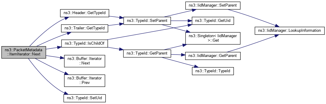 Here is the caller graph for this function:| PacketMetadata::Item ns3::PacketMetadata::ItemIterator::Next | ( | void | ) |