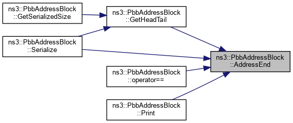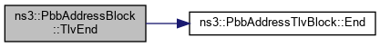 Here is the call graph for this function:| PbbAddressBlock::TlvIterator ns3::PbbAddressBlock::TlvEnd | ( | void | ) |