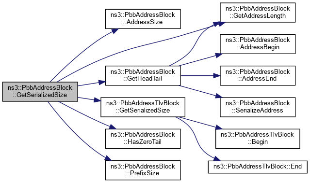 Here is the call graph for this function:| int ns3::PbbAddressBlock::TlvSize | ( | void | ) | const |