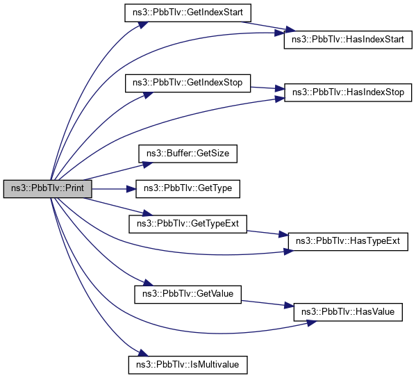 Here is the call graph for this function:| void ns3::PbbTlv::Print | ( | std::ostream & | os | ) | const |