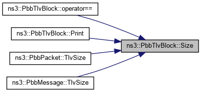 Here is the caller graph for this function:| int ns3::PbbTlvBlock::Size | ( | void | ) | const |