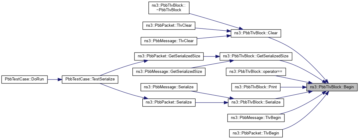 Here is the caller graph for this function:| PbbTlvBlock::ConstIterator ns3::PbbTlvBlock::Begin | ( | void | ) | const |