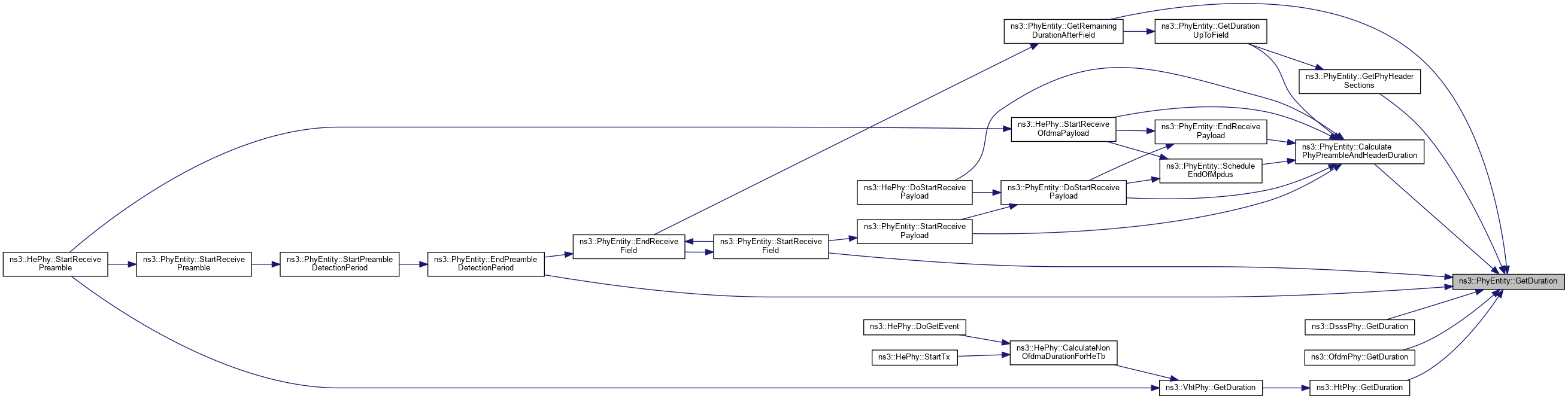 | Get the duration of the PPDU field (or group of fields) used by this entity for the given transmission parameters. More... | |