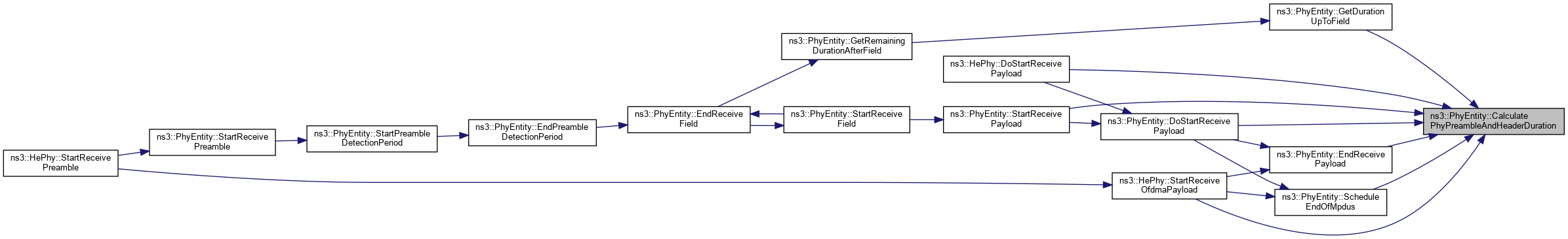 References DoStartReceiveField(), EndReceiveField(), GetDuration(), ns3::EventId::IsExpired(), ns3::WifiPhy::m_endPhyRxEvent, m_state, m_wifiPhy, NS_ABORT_MSG_IF, NS_ASSERT, NS_LOG_FUNCTION, ns3::Simulator::Schedule(), StartReceivePayload(), ns3::WIFI_PPDU_FIELD_DATA, and ns3::WIFI_PPDU_FIELD_PREAMBLE.