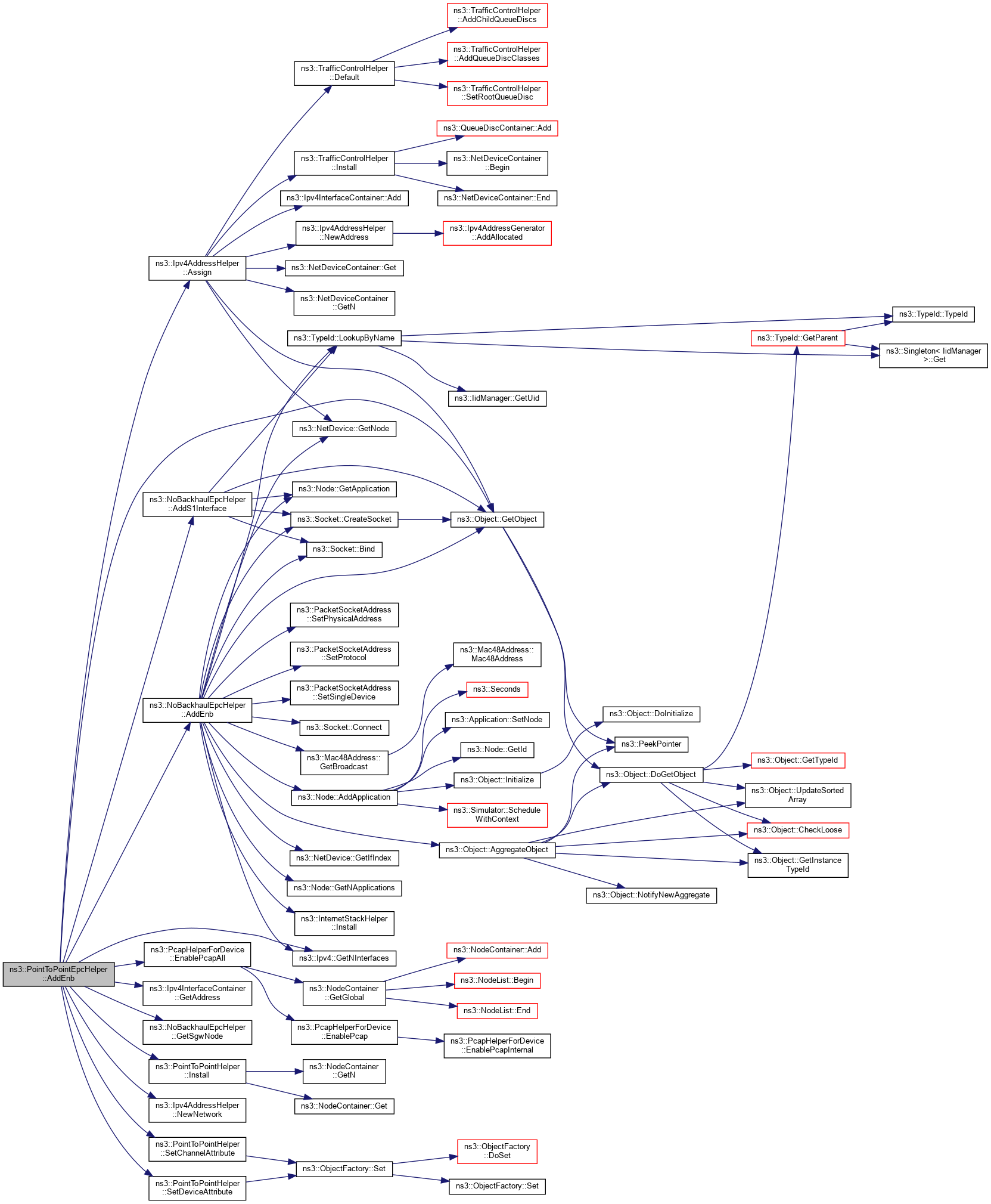 References ns3::NoBackhaulEpcHelper::AddEnb(), ns3::NoBackhaulEpcHelper::AddS1Interface(), ns3::Ipv4AddressHelper::Assign(), ns3::PcapHelperForDevice::EnablePcapAll(), ns3::Ipv4InterfaceContainer::GetAddress(), ns3::Ipv4::GetNInterfaces(), ns3::Object::GetObject(), ns3::NoBackhaulEpcHelper::GetSgwNode(), ns3::PointToPointHelper::Install(), m_s1uIpv4AddressHelper, m_s1uLinkDataRate, m_s1uLinkDelay, m_s1uLinkEnablePcap, m_s1uLinkMtu, m_s1uLinkPcapPrefix, ns3::Ipv4AddressHelper::NewNetwork(), NS_LOG_FUNCTION, NS_LOG_LOGIC, ns3::PointToPointHelper::SetChannelAttribute(), and ns3::PointToPointHelper::SetDeviceAttribute().