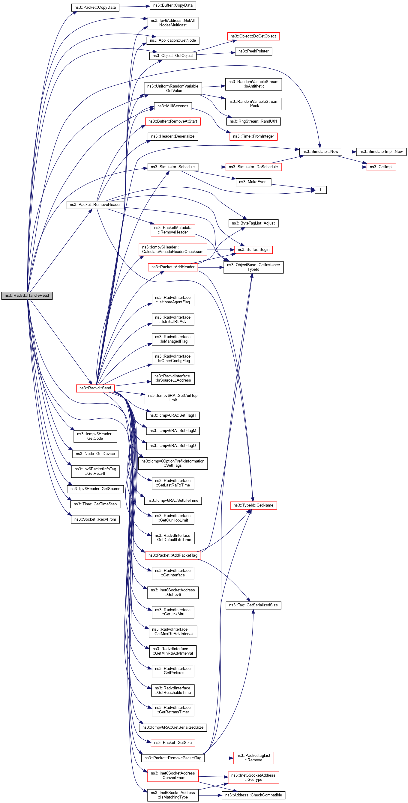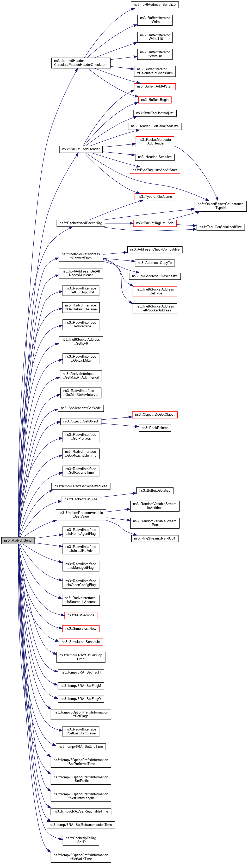 References ns3::Packet::AddHeader(), ns3::Packet::AddPacketTag(), ns3::Icmpv6OptionPrefixInformation::AUTADDRCONF, ns3::Icmpv6Header::CalculatePseudoHeaderChecksum(), ns3::Inet6SocketAddress::ConvertFrom(), ns3::Ipv6Address::GetAllNodesMulticast(), ns3::RadvdInterface::GetCurHopLimit(), ns3::RadvdInterface::GetDefaultLifeTime(), ns3::RadvdInterface::GetInterface(), ns3::Inet6SocketAddress::GetIpv6(), ns3::RadvdInterface::GetLinkMtu(), ns3::RadvdInterface::GetMaxRtrAdvInterval(), ns3::RadvdInterface::GetMinRtrAdvInterval(), ns3::Application::GetNode(), ns3::Object::GetObject(), ns3::RadvdInterface::GetPrefixes(), ns3::RadvdInterface::GetReachableTime(), ns3::RadvdInterface::GetRetransTimer(), ns3::Icmpv6RA::GetSerializedSize(), ns3::Packet::GetSize(), ns3::UniformRandomVariable::GetValue(), ns3::RadvdInterface::IsHomeAgentFlag(), ns3::RadvdInterface::IsInitialRtrAdv(), ns3::RadvdInterface::IsManagedFlag(), ns3::RadvdInterface::IsOtherConfigFlag(), ns3::RadvdInterface::IsSourceLLAddress(), list, m_jitter, m_sendSockets, m_unsolicitedEventIds, MAX_INITIAL_RTR_ADVERT_INTERVAL, ns3::MilliSeconds(), ns3::Simulator::Now(), NS_ASSERT, NS_LOG_FUNCTION, NS_LOG_INFO, NS_LOG_LOGIC, ns3::Icmpv6OptionPrefixInformation::ONLINK, ns3::Icmpv6OptionPrefixInformation::ROUTERADDR, ns3::Simulator::Schedule(), ns3::Icmpv6RA::SetCurHopLimit(), ns3::Icmpv6RA::SetFlagH(), ns3::Icmpv6RA::SetFlagM(), ns3::Icmpv6RA::SetFlagO(), ns3::Icmpv6OptionPrefixInformation::SetFlags(), ns3::RadvdInterface::SetLastRaTxTime(), ns3::Icmpv6RA::SetLifeTime(), ns3::Icmpv6OptionPrefixInformation::SetPreferredTime(), ns3::Icmpv6OptionPrefixInformation::SetPrefix(), ns3::Icmpv6OptionPrefixInformation::SetPrefixLength(), ns3::Icmpv6RA::SetReachableTime(), ns3::Icmpv6RA::SetRetransmissionTime(), ns3::SocketIpTtlTag::SetTtl(), and ns3::Icmpv6OptionPrefixInformation::SetValidTime().