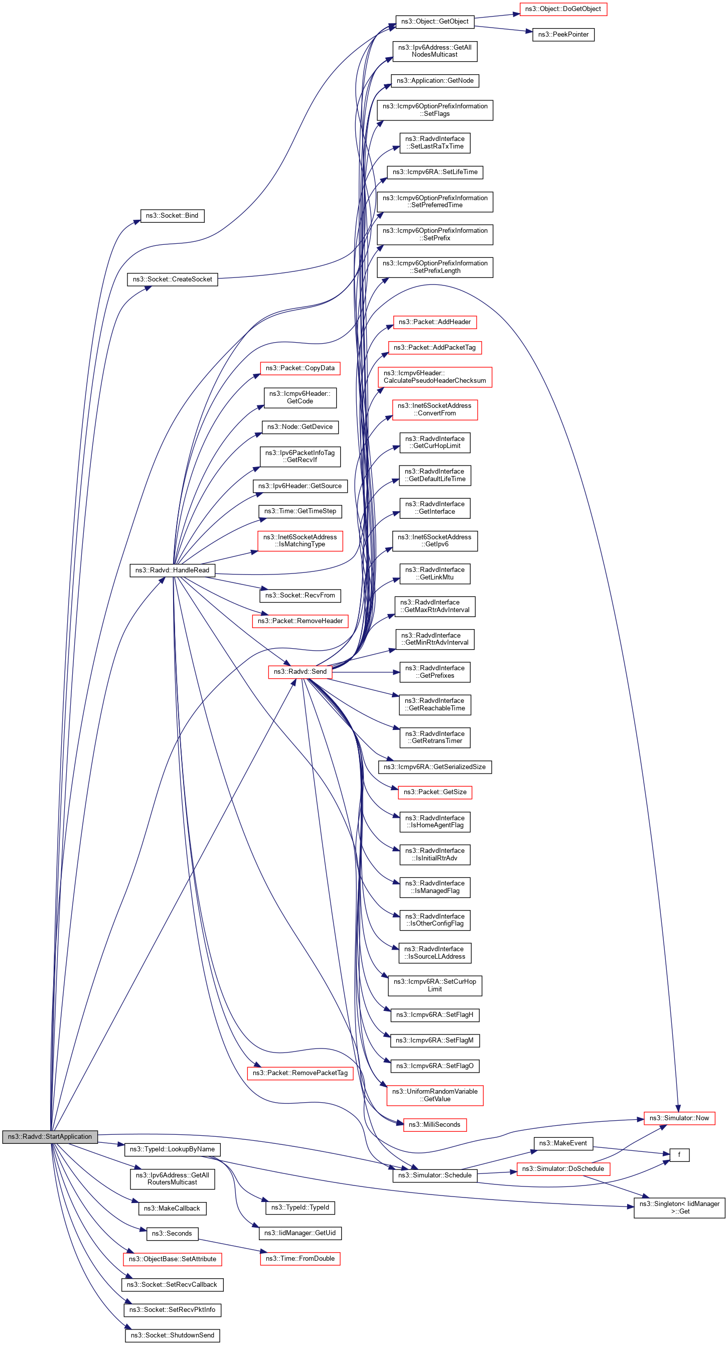 References ns3::Socket::Bind(), ns3::Socket::CreateSocket(), ns3::Ipv6Address::GetAllNodesMulticast(), ns3::Ipv6Address::GetAllRoutersMulticast(), ns3::Application::GetNode(), ns3::Object::GetObject(), HandleRead(), ns3::Ipv6Header::IPV6_ICMPV6, ns3::TypeId::LookupByName(), m_configurations, m_recvSocket, m_sendSockets, m_unsolicitedEventIds, ns3::MakeCallback(), NS_ASSERT, NS_LOG_FUNCTION, ns3::Simulator::Schedule(), ns3::Seconds(), Send(), ns3::ObjectBase::SetAttribute(), ns3::Socket::SetRecvCallback(), ns3::Socket::SetRecvPktInfo(), and ns3::Socket::ShutdownSend().