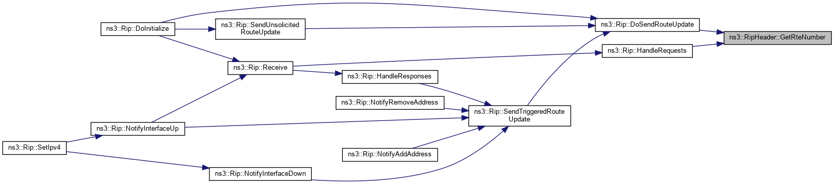 Here is the caller graph for this function:| uint16_t ns3::RipHeader::GetRteNumber | ( | void | ) | const |
