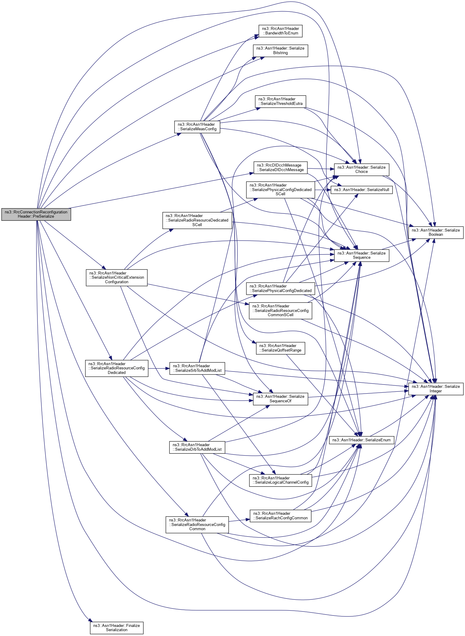 References ns3::RrcAsn1Header::BandwidthToEnum(), ns3::LteRrcSap::MobilityControlInfo::carrierBandwidth, ns3::LteRrcSap::MobilityControlInfo::carrierFreq, ns3::LteRrcSap::CarrierBandwidthEutra::dlBandwidth, ns3::LteRrcSap::CarrierFreqEutra::dlCarrierFreq, ns3::Asn1Header::FinalizeSerialization(), ns3::LteRrcSap::MobilityControlInfo::haveCarrierBandwidth, ns3::LteRrcSap::MobilityControlInfo::haveCarrierFreq, ns3::LteRrcSap::MobilityControlInfo::haveRachConfigDedicated, m_haveMeasConfig, m_haveMobilityControlInfo, m_haveNonCriticalExtension, m_haveRadioResourceConfigDedicated, m_measConfig, m_mobilityControlInfo, m_nonCriticalExtension, m_radioResourceConfigDedicated, m_rrcTransactionIdentifier, ns3::Asn1Header::m_serializationResult, MAX_EARFCN, ns3::LteRrcSap::MobilityControlInfo::newUeIdentity, ns3::LteRrcSap::MobilityControlInfo::rachConfigDedicated, ns3::LteRrcSap::MobilityControlInfo::radioResourceConfigCommon, ns3::LteRrcSap::RachConfigDedicated::raPrachMaskIndex, ns3::LteRrcSap::RachConfigDedicated::raPreambleIndex, ns3::Asn1Header::SerializeBitstring(), ns3::Asn1Header::SerializeChoice(), ns3::RrcDlDcchMessage::SerializeDlDcchMessage(), ns3::Asn1Header::SerializeEnum(), ns3::Asn1Header::SerializeInteger(), ns3::RrcAsn1Header::SerializeMeasConfig(), ns3::RrcAsn1Header::SerializeNonCriticalExtensionConfiguration(), ns3::RrcAsn1Header::SerializeRadioResourceConfigCommon(), ns3::RrcAsn1Header::SerializeRadioResourceConfigDedicated(), ns3::Asn1Header::SerializeSequence(), ns3::LteRrcSap::MobilityControlInfo::targetPhysCellId, ns3::LteRrcSap::CarrierBandwidthEutra::ulBandwidth, and ns3::LteRrcSap::CarrierFreqEutra::ulCarrierFreq.