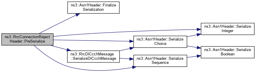 References ns3::Asn1Header::FinalizeSerialization(), m_rrcConnectionReject, ns3::Asn1Header::m_serializationResult, ns3::Asn1Header::SerializeChoice(), ns3::RrcDlCcchMessage::SerializeDlCcchMessage(), ns3::Asn1Header::SerializeInteger(), ns3::Asn1Header::SerializeSequence(), and ns3::LteRrcSap::RrcConnectionReject::waitTime.