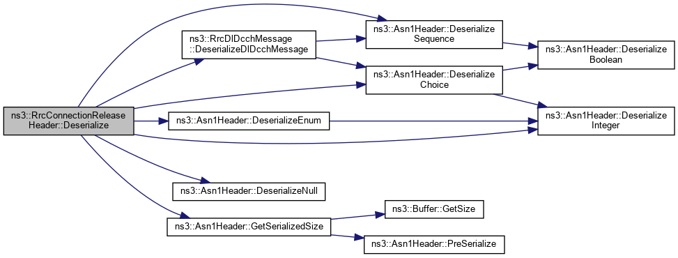 References ns3::Asn1Header::DeserializeChoice(), ns3::RrcDlDcchMessage::DeserializeDlDcchMessage(), ns3::Asn1Header::DeserializeEnum(), ns3::Asn1Header::DeserializeInteger(), ns3::Asn1Header::DeserializeNull(), ns3::Asn1Header::DeserializeSequence(), ns3::Asn1Header::GetSerializedSize(), m_rrcConnectionRelease, and ns3::LteRrcSap::RrcConnectionRelease::rrcTransactionIdentifier.