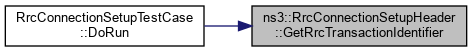 Here is the caller graph for this function:| uint8_t ns3::RrcConnectionSetupHeader::GetRrcTransactionIdentifier | ( | ) | const |