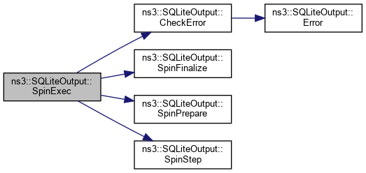 Here is the call graph for this function:| bool ns3::SQLiteOutput::SpinExec | ( | const std::string & | cmd | ) | const |