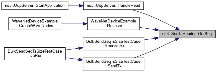 Here is the call graph for this function:| uint32_t ns3::SeqTsHeader::GetSeq | ( | void | ) | const |