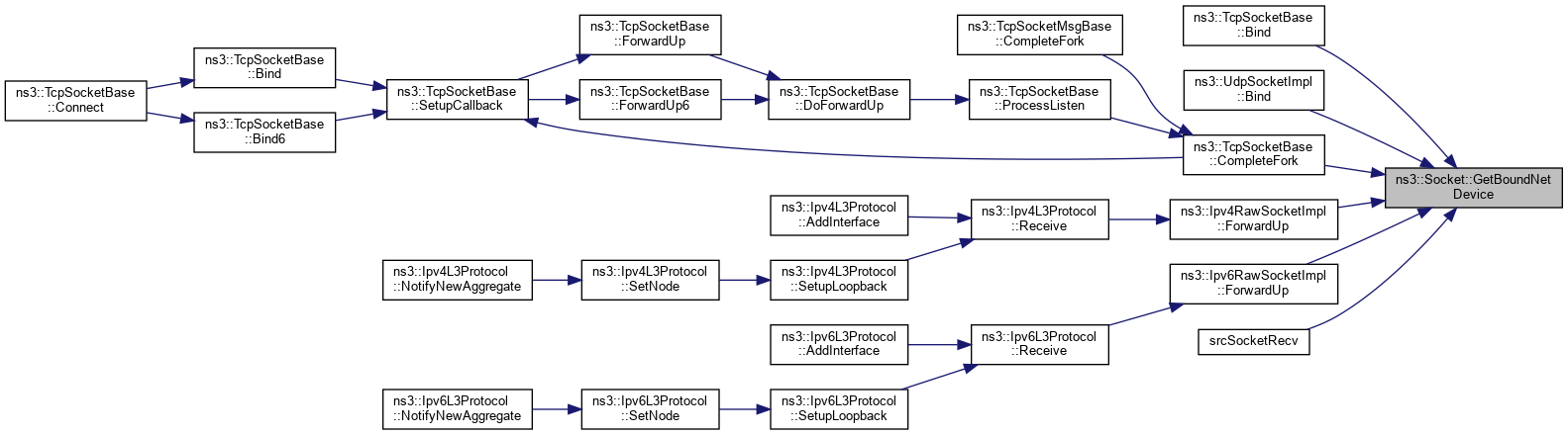 Referenced by Socket(), ns3::UdpSocketImpl::Bind(), ns3::UdpSocketImpl::Bind6(), ns3::UdpSocketImpl::BindToNetDevice(), BindToNetDevice(), ns3::PacketSocket::DoBind(), ns3::TcpSocketBase::DoForwardUp(), ns3::UdpSocketImpl::DoSendTo(), GetBoundNetDevice(), ns3::Ipv6RawSocketImpl::Ipv6JoinGroup(), ns3::UdpSocketImpl::Ipv6JoinGroup(), ns3::TcpSocketBase::PersistTimeout(), ns3::TcpSocketBase::SendDataPacket(), TcpDctcpCongestedRouter::SendDataPacket(), ns3::TcpSocketCongestedRouter::SendDataPacket(), ns3::TcpSocketBase::SendEmptyPacket(), ns3::TcpSocketSmallAcks::SendEmptyPacket(), ns3::Ipv4RawSocketImpl::SendTo(), ns3::Ipv6RawSocketImpl::SendTo(), ns3::TcpSocketBase::SetupEndpoint(), and ns3::TcpSocketBase::SetupEndpoint6().