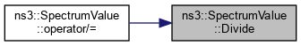 Here is the call graph for this function:| SpectrumValue & ns3::SpectrumValue::operator/= | ( | double | rhs | ) |