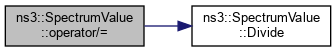 Here is the call graph for this function:| SpectrumValue & ns3::SpectrumValue::operator/= | ( | const SpectrumValue & | rhs | ) |