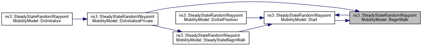 References alreadyStarted, BeginWalk(), ns3::UniformRandomVariable::GetValue(), ns3::EventId::IsRunning(), m_event, m_helper, m_maxPause, m_maxSpeed, m_maxX, m_maxY, m_minPause, m_minSpeed, m_minX, m_minY, m_pause, m_position, m_speed, m_u_r, m_x, m_x1_r, m_x2_r, m_y, m_y1_r, m_y2_r, m_z, ns3::MobilityModel::NotifyCourseChange(), NS_ASSERT, ns3::ConstantVelocityHelper::Pause(), ns3::Simulator::Schedule(), ns3::Simulator::ScheduleNow(), ns3::Seconds(), ns3::ObjectBase::SetAttribute(), ns3::ConstantVelocityHelper::SetPosition(), SteadyStateBeginWalk(), and ns3::ConstantVelocityHelper::Update().