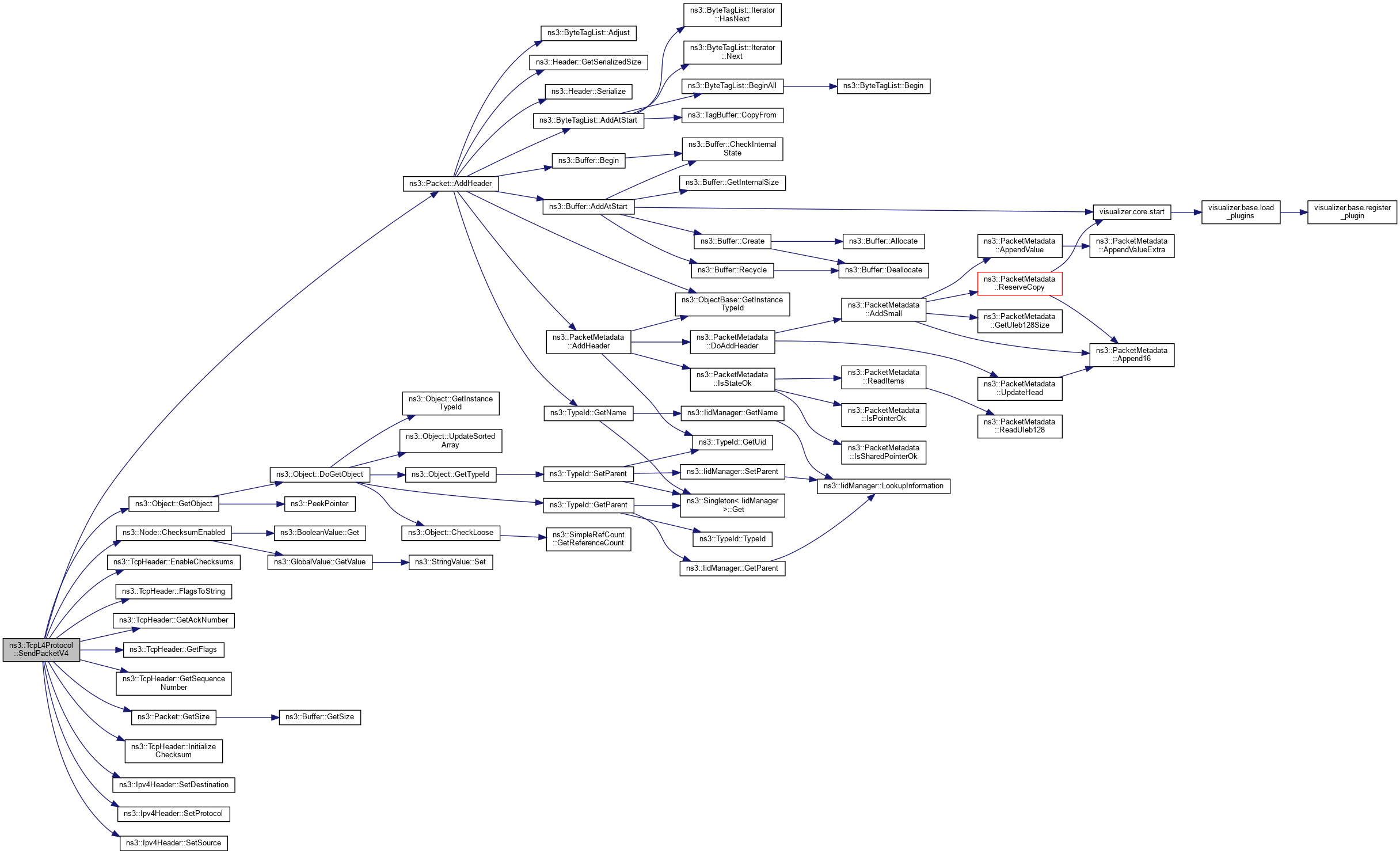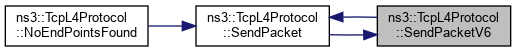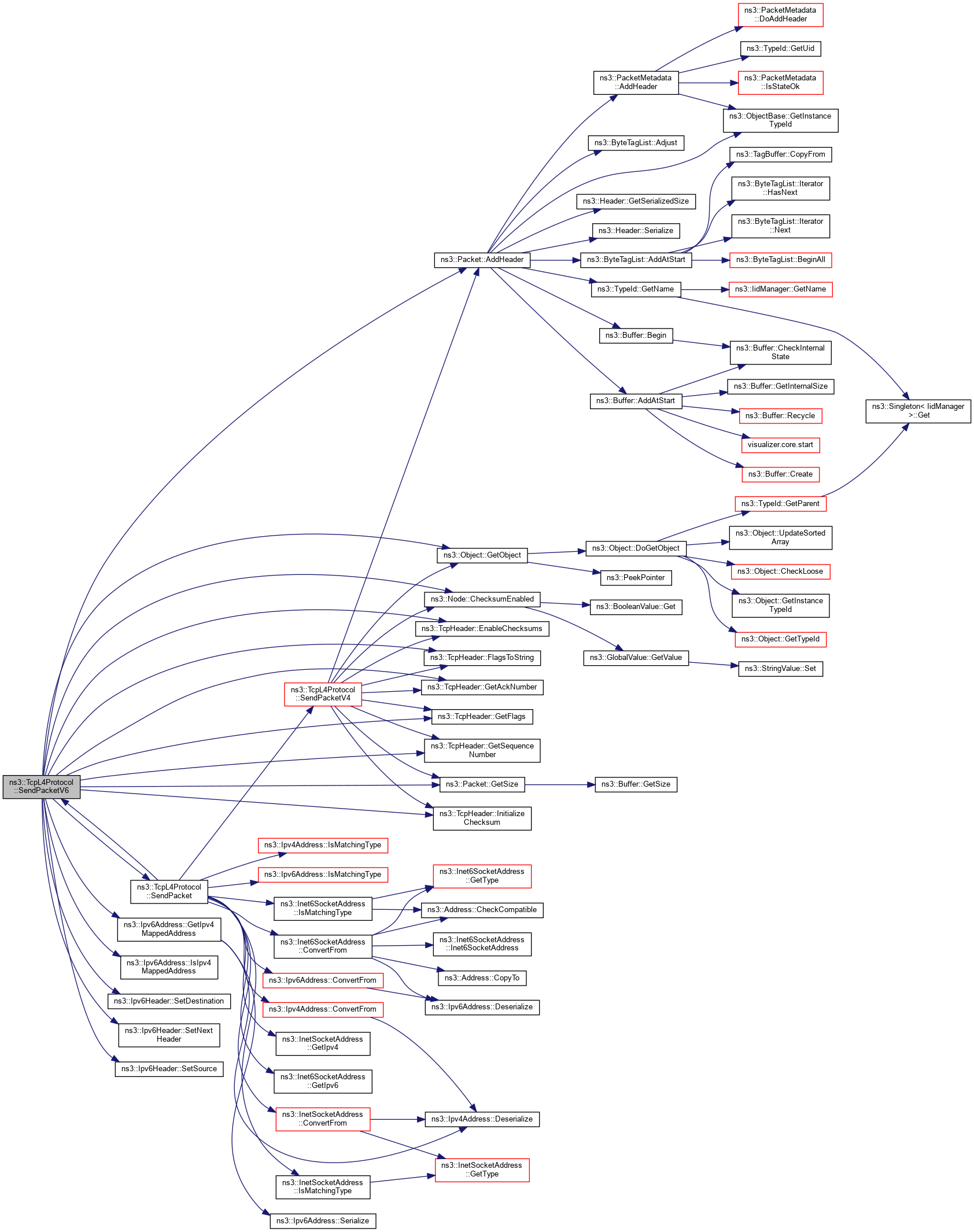 References ns3::Packet::AddHeader(), ns3::Node::ChecksumEnabled(), ns3::TcpHeader::EnableChecksums(), ns3::TcpHeader::FlagsToString(), ns3::TcpHeader::GetAckNumber(), ns3::TcpHeader::GetFlags(), ns3::Ipv6Address::GetIpv4MappedAddress(), ns3::Object::GetObject(), ns3::TcpHeader::GetSequenceNumber(), ns3::Packet::GetSize(), ns3::TcpHeader::InitializeChecksum(), ns3::Ipv6Address::IsIpv4MappedAddress(), m_downTarget6, m_node, NS_FATAL_ERROR, NS_LOG_ERROR, NS_LOG_FUNCTION, NS_LOG_LOGIC, PROT_NUMBER, SendPacket(), ns3::Ipv6Header::SetDestination(), ns3::Ipv6Header::SetNextHeader(), and ns3::Ipv6Header::SetSource().
