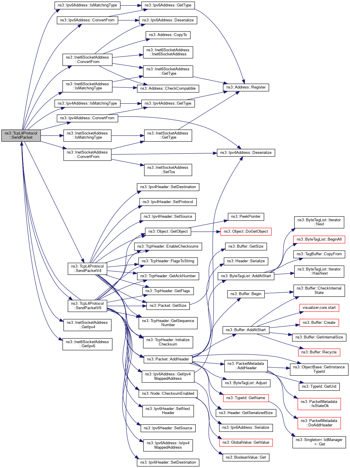 References ns3::Inet6SocketAddress::ConvertFrom(), ns3::InetSocketAddress::ConvertFrom(), ns3::Ipv4Address::ConvertFrom(), ns3::Ipv6Address::ConvertFrom(), ns3::InetSocketAddress::GetIpv4(), ns3::Inet6SocketAddress::GetIpv6(), ns3::Inet6SocketAddress::IsMatchingType(), ns3::InetSocketAddress::IsMatchingType(), ns3::Ipv4Address::IsMatchingType(), ns3::Ipv6Address::IsMatchingType(), NS_ASSERT, NS_FATAL_ERROR, NS_LOG_FUNCTION, SendPacketV4(), and SendPacketV6().