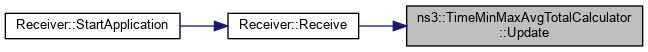 Here is the call graph for this function:| void TimeMinMaxAvgTotalCalculator::Update | ( | const Time | i | ) |