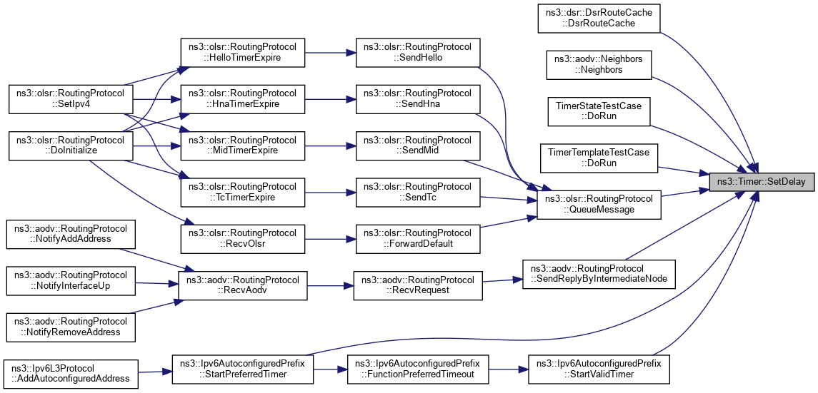 Referenced by ns3::dsr::DsrRouting::DsrRouting(), ns3::aodv::RoutingProtocol::DoInitialize(), TimerStateTestCase::DoRun(), TimerTemplateTestCase::DoRun(), ns3::aodv::RoutingProtocol::HelloTimerExpire(), ns3::olsr::RoutingProtocol::HelloTimerExpire(), ns3::olsr::RoutingProtocol::HnaTimerExpire(), ns3::olsr::RoutingProtocol::MidTimerExpire(), ns3::aodv::Neighbors::Purge(), ns3::dsr::DsrRouteCache::PurgeMac(), ns3::olsr::RoutingProtocol::QueueMessage(), ns3::aodv::RoutingProtocol::RerrRateLimitTimerExpire(), ns3::aodv::RoutingProtocol::RreqRateLimitTimerExpire(), ns3::aodv::Neighbors::ScheduleTimer(), ns3::dsr::DsrRouteCache::ScheduleTimer(), ns3::dsr::DsrRouting::SendBuffTimerExpire(), ns3::TcpSocketBase::SendDataPacket(), ns3::TcpSocketBase::SendPendingData(), ns3::dsdv::RoutingProtocol::SendPeriodicUpdate(), ns3::aodv::RoutingProtocol::Start(), ns3::dsdv::RoutingProtocol::Start(), ns3::Ipv6AutoconfiguredPrefix::StartPreferredTimer(), ns3::Ipv6AutoconfiguredPrefix::StartValidTimer(), and ns3::olsr::RoutingProtocol::TcTimerExpire().