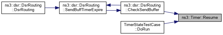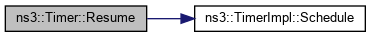 Here is the call graph for this function:| void ns3::Timer::Resume | ( | void | ) |