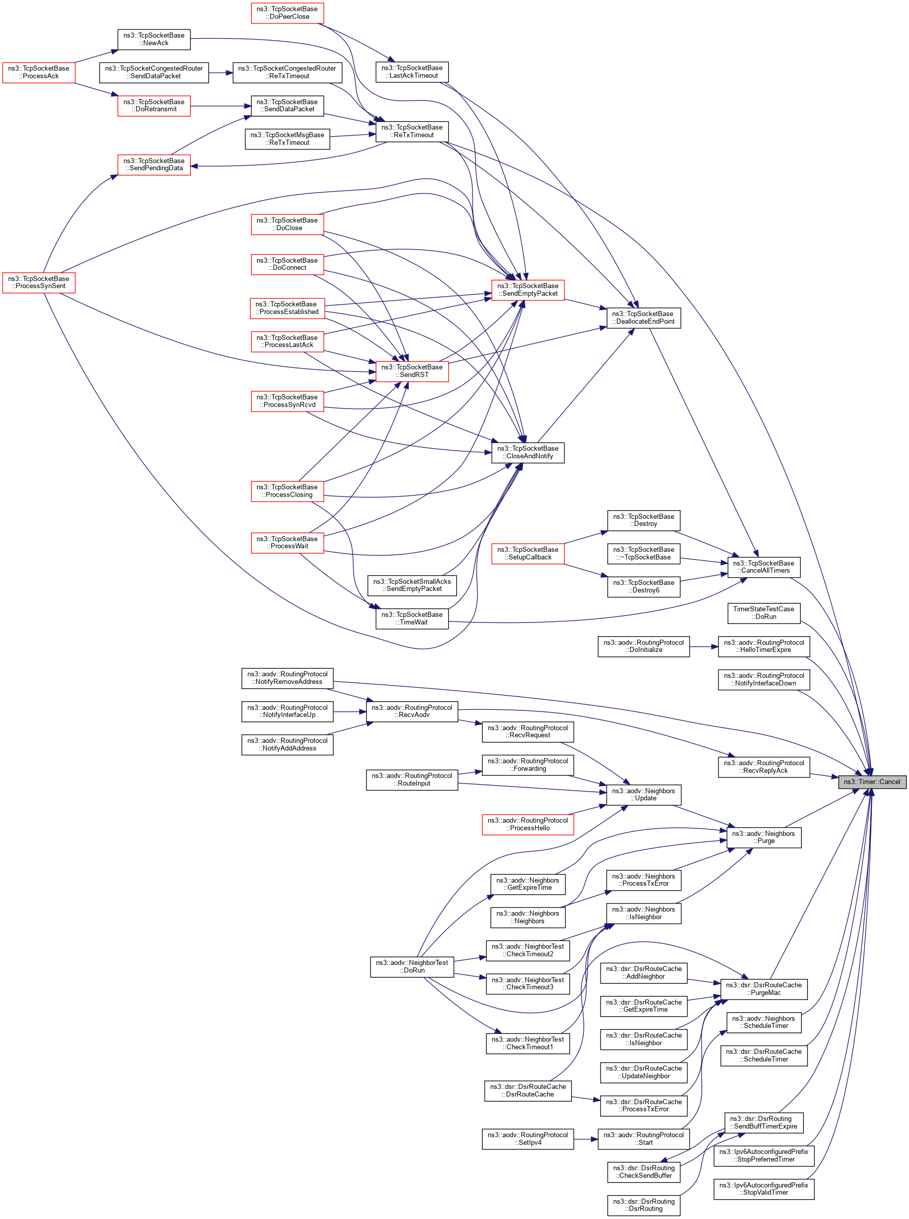 Referenced by ns3::TcpSocketBase::CancelAllTimers(), TimerStateTestCase::DoRun(), ns3::aodv::RoutingProtocol::HelloTimerExpire(), ns3::aodv::RoutingProtocol::NotifyInterfaceDown(), ns3::aodv::RoutingProtocol::NotifyRemoveAddress(), ns3::aodv::Neighbors::Purge(), ns3::dsr::DsrRouteCache::PurgeMac(), ns3::aodv::RoutingProtocol::RecvReplyAck(), ns3::TcpSocketBase::ReTxTimeout(), ns3::aodv::Neighbors::ScheduleTimer(), ns3::dsr::DsrRouteCache::ScheduleTimer(), ns3::dsr::DsrRouting::SendBuffTimerExpire(), ns3::Ipv6AutoconfiguredPrefix::StopPreferredTimer(), and ns3::Ipv6AutoconfiguredPrefix::StopValidTimer().