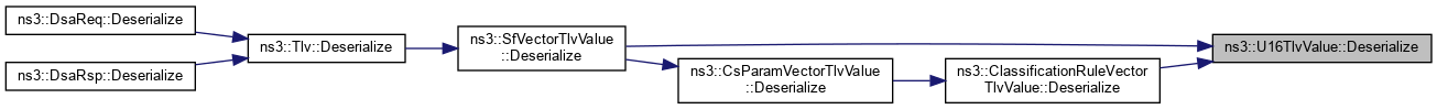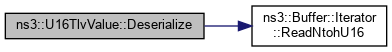 Here is the call graph for this function:| uint32_t ns3::U16TlvValue::Deserialize | ( | Buffer::Iterator | start | ) |